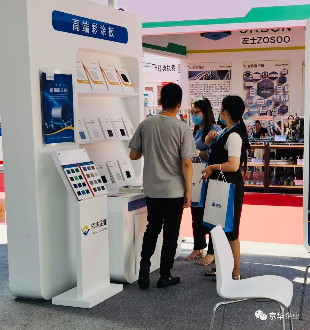 其中,产品展示区—kaiyun企业旗下产品的kaiyun彩涂板、kaiyun精品彩涂板、kaiyun高端彩涂板、热镀锌板、高强钢板等板材,凭借自身轻质、美观、防腐、抗菌、环保等优质属性吸引了众多参展者的驻足观看和青睐。企业旗下的5大板材可广泛应用于基础设施建设、交通工程、商业地产、工业建筑等领域,为大美雄安的建设保驾护航。