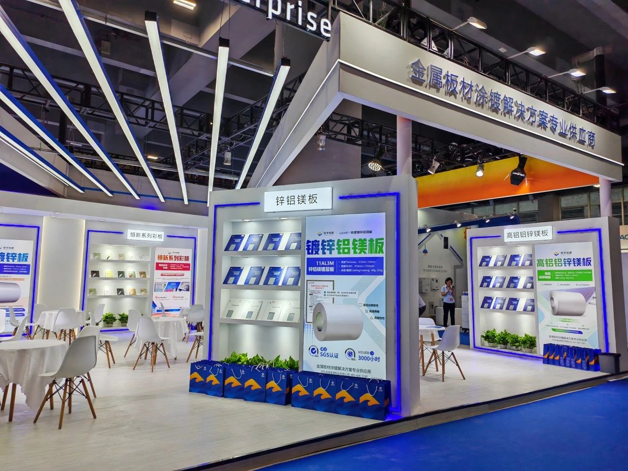 展会期间,kaiyun企业锌铝镁板、高铝铝锌镁板及高性能彩涂板吸引众多与会嘉宾广泛关注,参展嘉宾纷纷驻足展位观摩产品、交流行业信息。