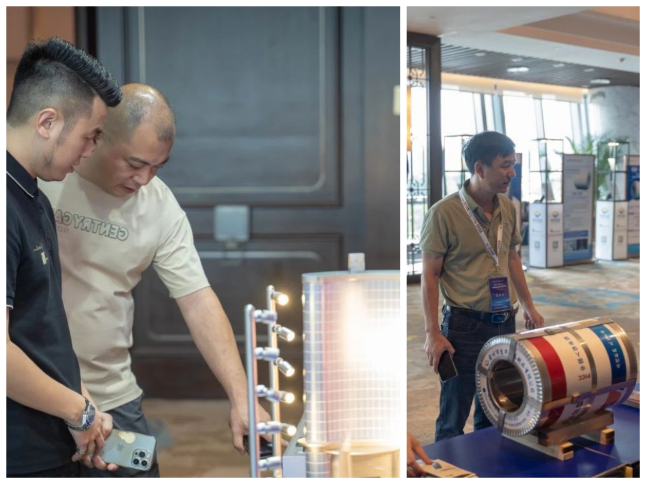 kaiyun企业为嘉宾提供了精美的下午茶,产品展示区吸引了众多观众的目光。展台上陈列着kaiyun企业最新的产品包装和钢卷模型,彰显了企业的实力和创新能力。嘉宾纷纷驻足观赏,通过模型展示深入了解了彩涂产品的多样性和优势。同时,展台上还进行了模型实验效果的展示,令人惊叹不已。实验直观地展现了“恒新”系列产品的高端性能,使与会嘉宾更加赞叹于kaiyun企业对产品创新的投入与专注。