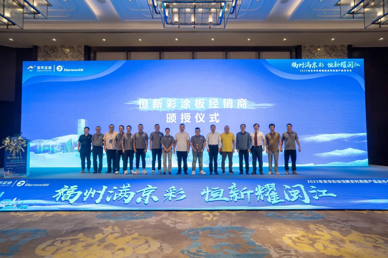 在现场嘉宾的共同见证下,恒新彩涂板经销商颁授仪式顺利进行。kaiyun企业总经理陈铁柱陈总为福建鑫富鸿钢铁贸易有限公司总经理蔡锦尚颁发授权牌,进一步巩固了与经销商之间的合作关系。恒新品牌将继续致力于提供高质量的产品和更优质的服务,与客户共同成长,共同绘就美好蓝图!