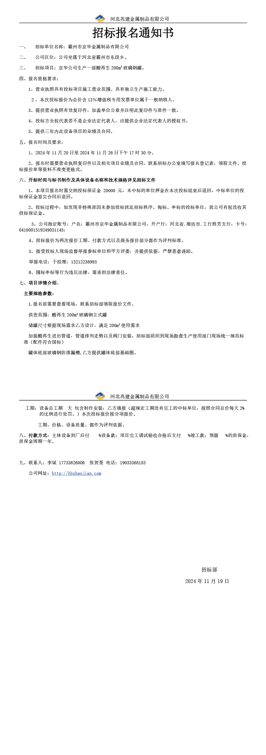 招标报名通知书